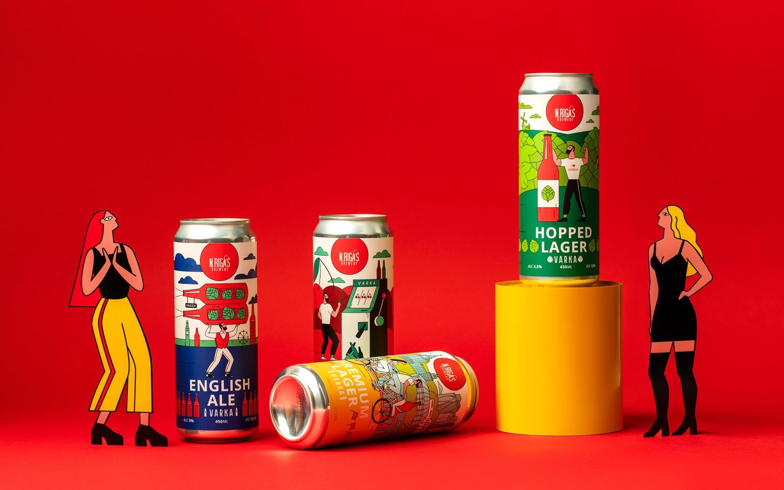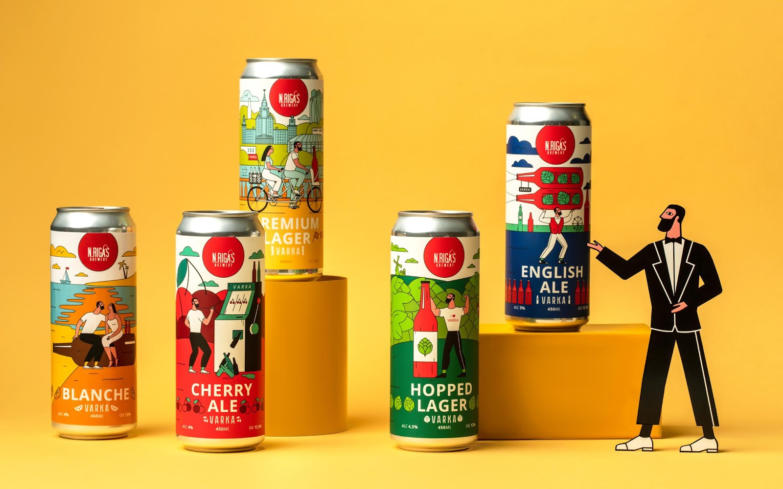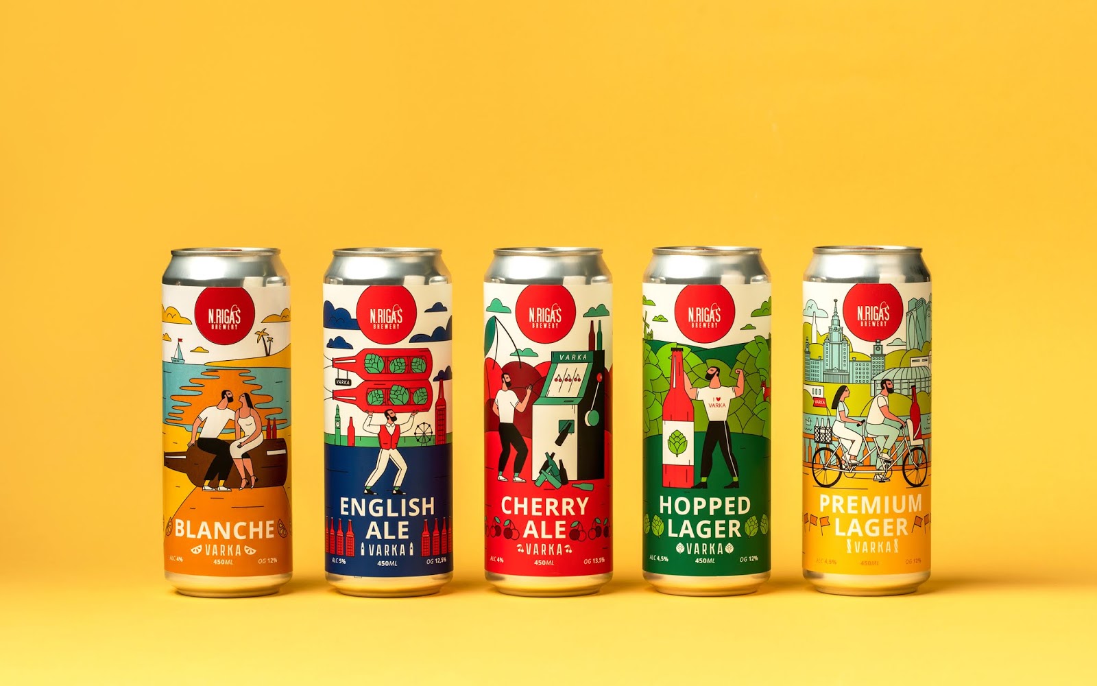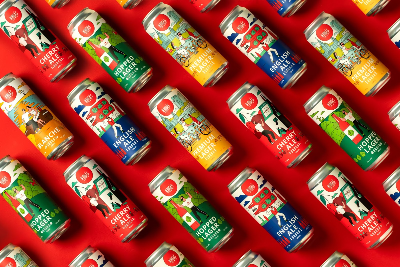 這是VARKA啤酒包裝設(shè)計(jì),使用當(dāng)下比較流行的插畫(huà)形式,描繪了商品在生活中的使用場(chǎng)景,用多種艷麗的顏色烘托出正向、多姿多彩的氛圍。